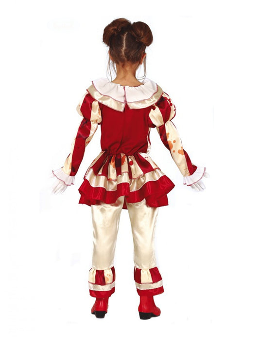 Dívčí kostým strašidelného klauna v červené a bílé barvě