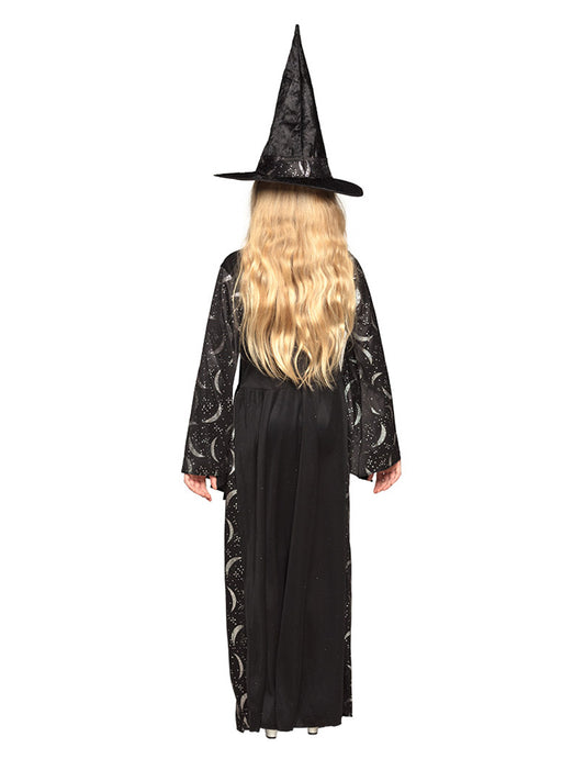 Dívčí kostým čarodějnice ve tvaru půlměsíce na Halloween
