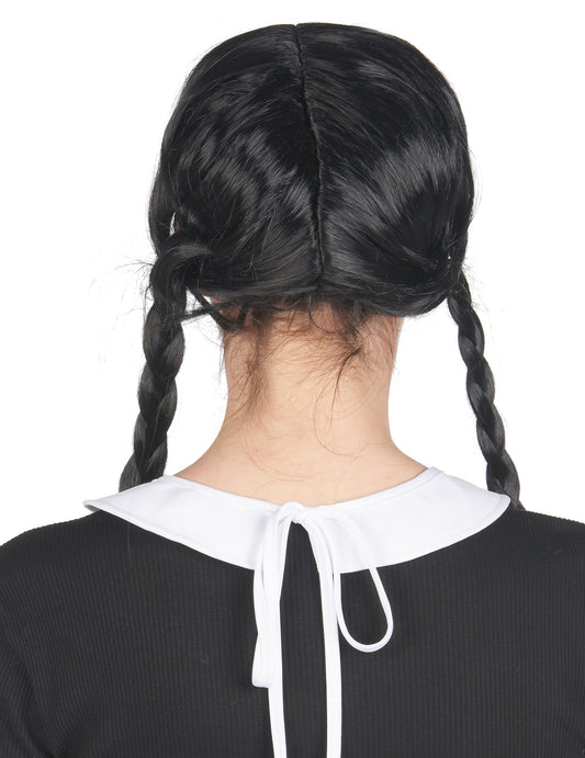 Zahrnuto: bílý obojek s hroty, černá paruka s copánky
