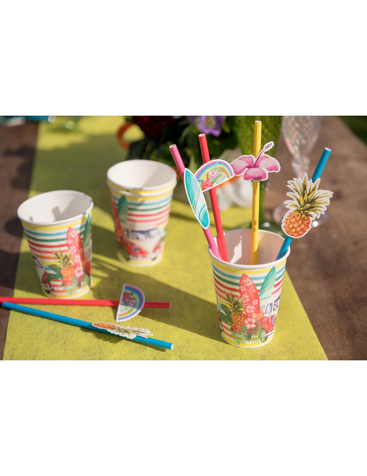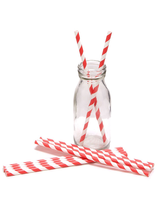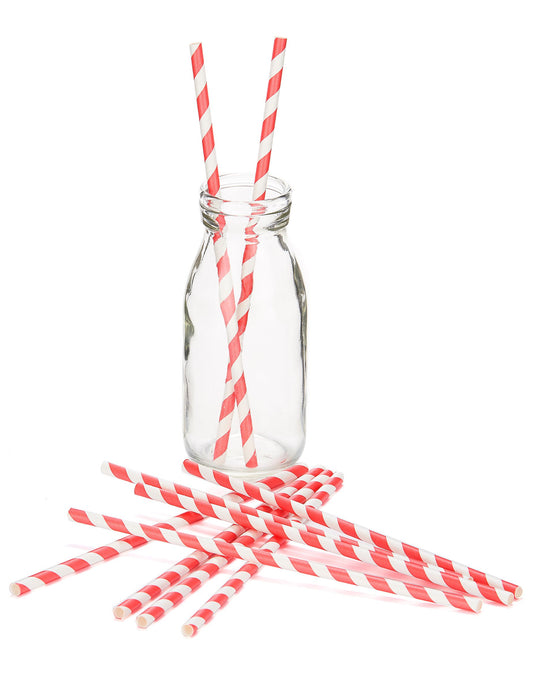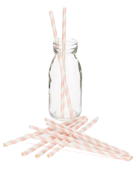 10 růžových pruhovaných papírových brček 19,5 cm na studené nápoje