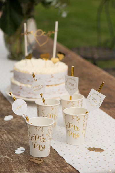 10 kovových papírových kelímků s motivem novomanželů 7,8 x 9,7 cm 12 cl