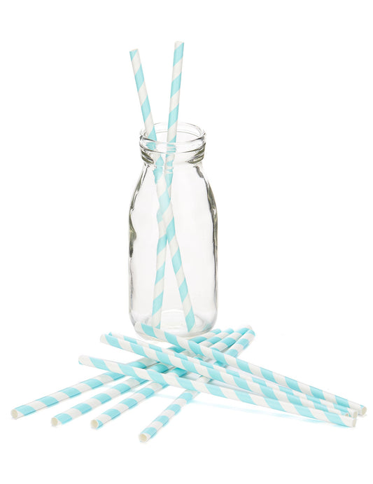 Akce10 pailles en carton rayées blanches et menthe 19,5 cm pour fête