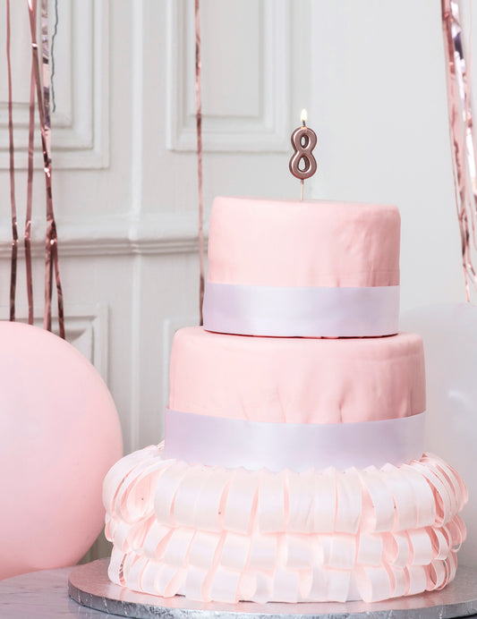 Bougie d'anniversaire chiffre 8 rose gold 4,3 cm métallisée avec pic