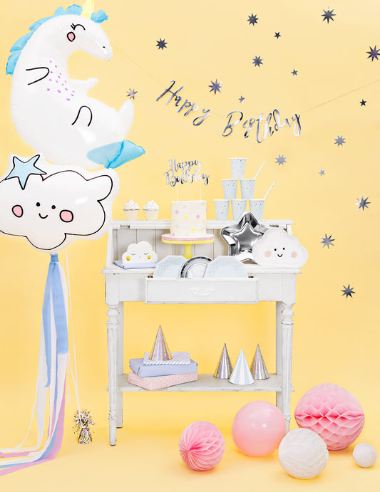 Cake topper en carton happy birthday argenté métallisé 22,5 cm pour gâteau