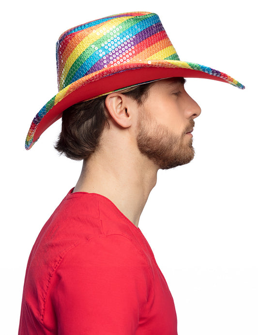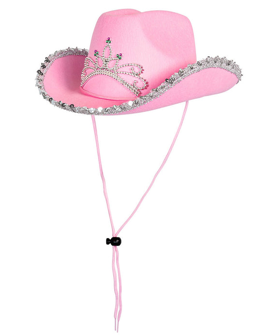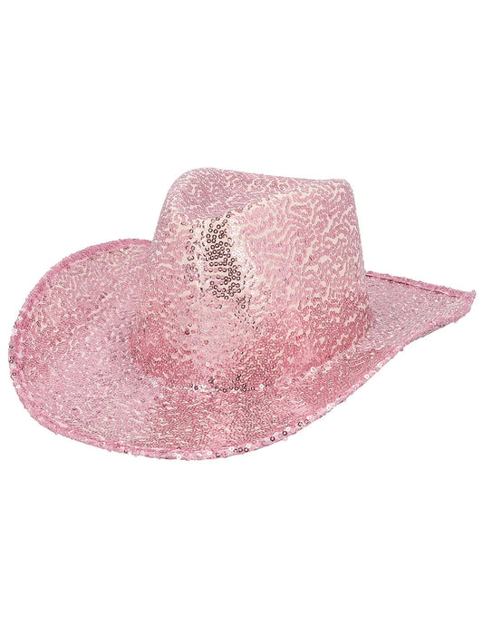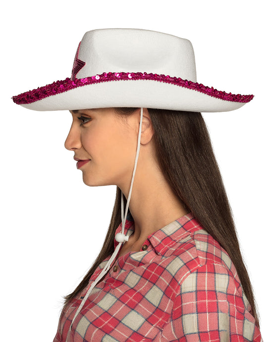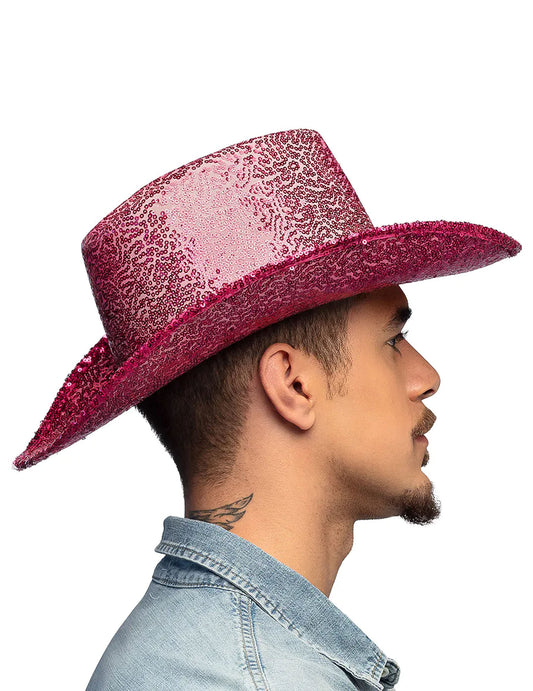 Kovbojský klobouk s flitry pro dospělé v růžové fuchsiové barvě