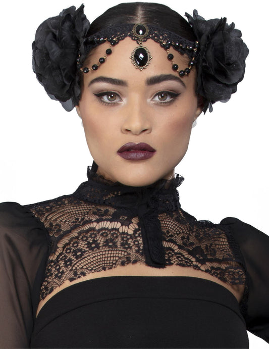 VyprodánoČerná gotická čelenka s růžemi pro dospělé