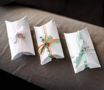 10 bílých kartonových krabic se stuhou 5,2 x 5,2 cm na svatbu