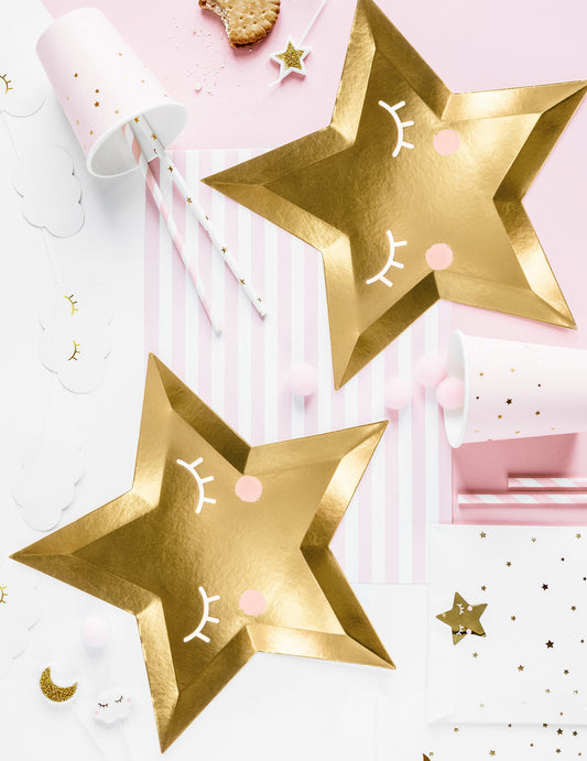 6 malých zlatých metalických papírových talířů s hvězdami 18 cm