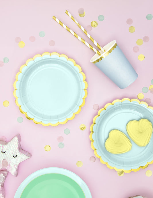 8 papírových talířů pro dívky nebo chlapce, růžové, modré a zlaté 23 cm