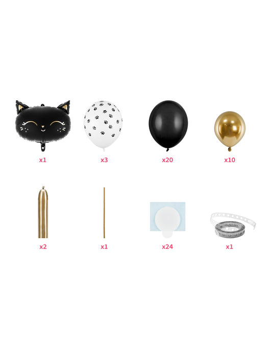 Včetně : 33 balónků, 1 balónek s motivem černé kočky , 2 modelovací balónky , 1 brčko , 24 lepidel , 1 stuha na girlandu z balónků