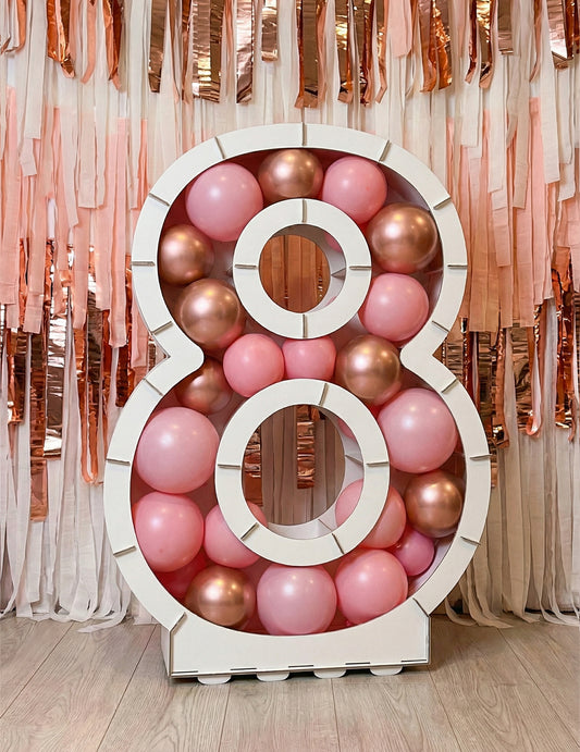 - Zlaté nebo růžové zlaté číselné balónky na oslavu milníkových narozenin.