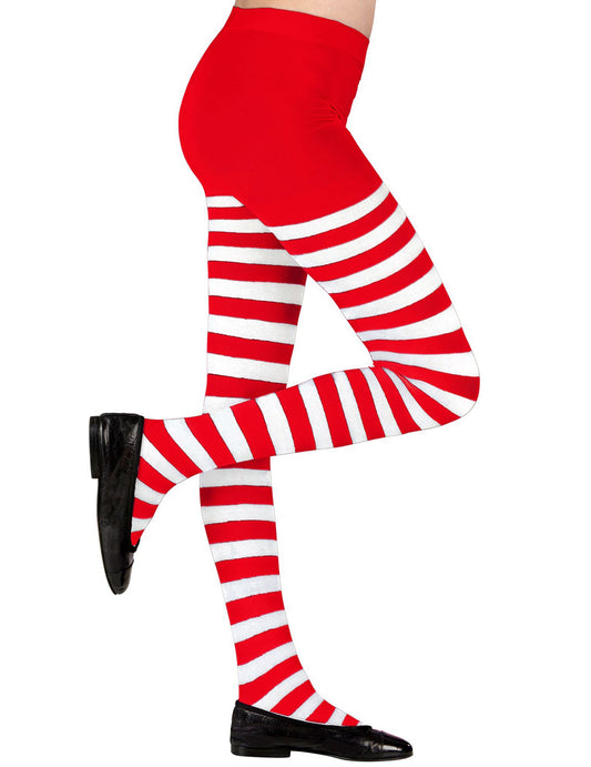 VyprodánoPruhované punčochy s červenou a zelenou mašlí pro dámské vánoční elfky