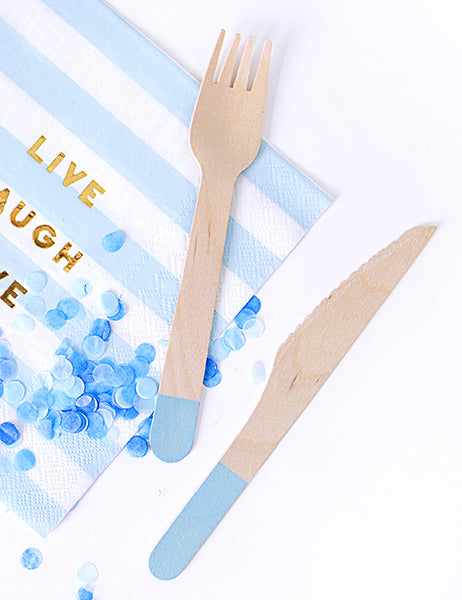 Sleva18 Dřevěné příbory v mátově modré barvě 16 cm