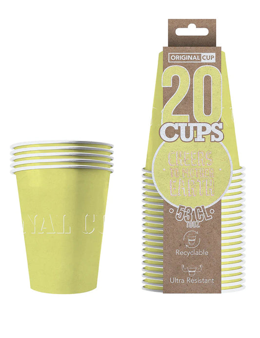 Vyprodáno20 amerických kelímků z recyklovaného kartonu pastelově žluté 53 cl