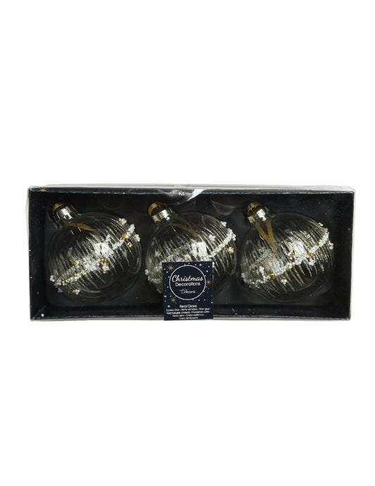 Vyprodáno3 průhledné skleněné vánoční koule se zlatými třpytkami 8 cm