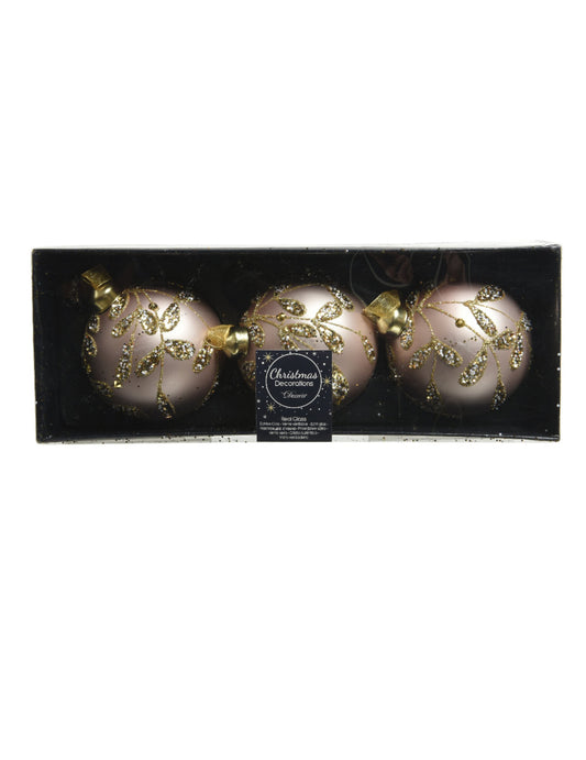 Akce3 skleněné vánoční koule v pudrově růžové barvě se zlatými listy 8 cm
