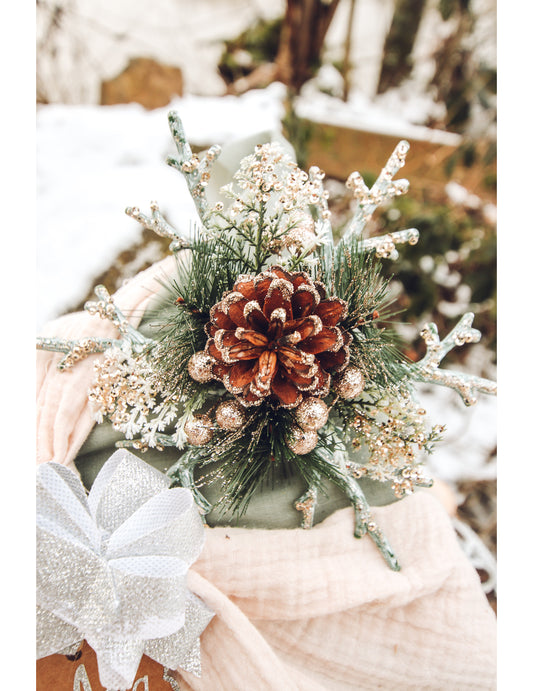 VyprodánoStředový dekorace přírodní s třpytkami v barvě šampaňského 19,5 cm