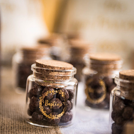 SlevaSkleněná láhev s korkovou zátkou ve tvaru bonbónu 14,5 cm, 250 ml