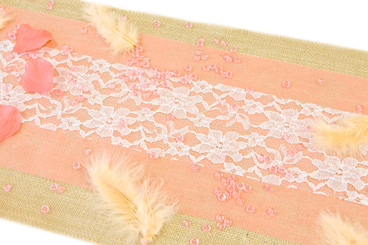 Polštářek z pytloviny a krajky pro snubní prsteny 12 cm