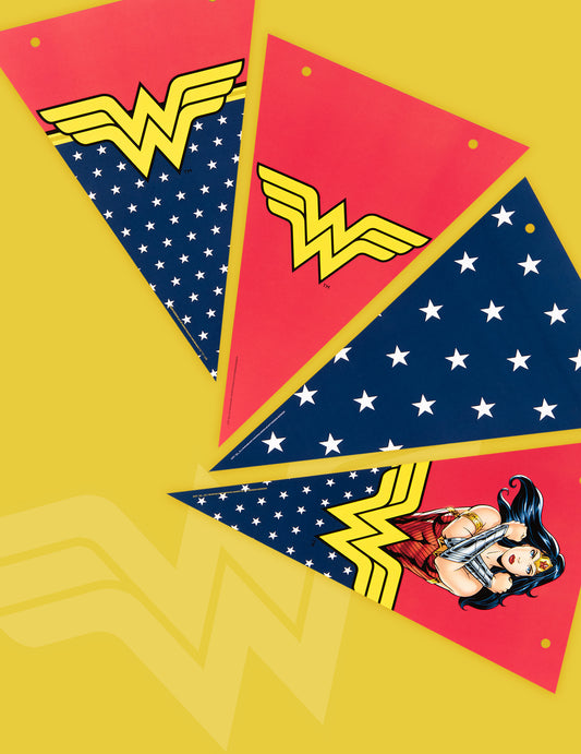 8 brček s medailonky s motivem Wonder Woman z kartonu o průměru 20 cm