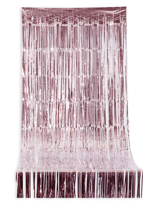 Růžovo-zlatá třpytivá záclona s třásněmi 2,44 m x 92 cm