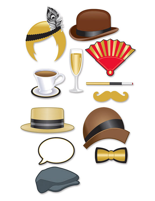 Zahrnuto: 8 klobouků, 3 role stuh, 8 doplňků do fotobudky, 15 svítících náramků, 8 konfetových děl, 8 foukacích pistolí, 80 míčků