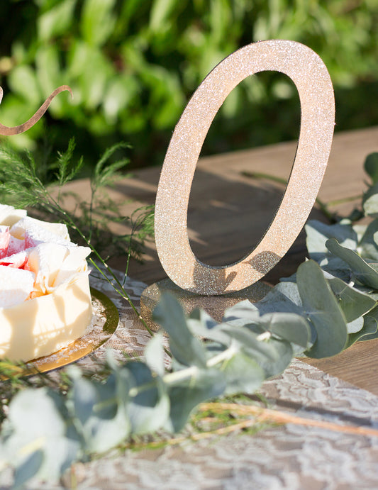 VyprodánoStředový díl číslo 0 šampaňské třpytivé dřevo 20 cm se stabilní základnou