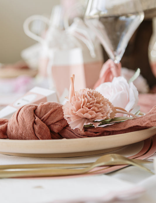 10 stolních fixů z růžového zlatého zeleninového kartonu 10 x 15 cm s listím