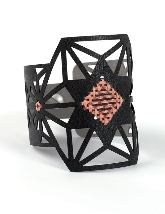 VyprodánoSada černého koženého vyšívacího náramku s hvězdicovým vzorem a růžovou nití