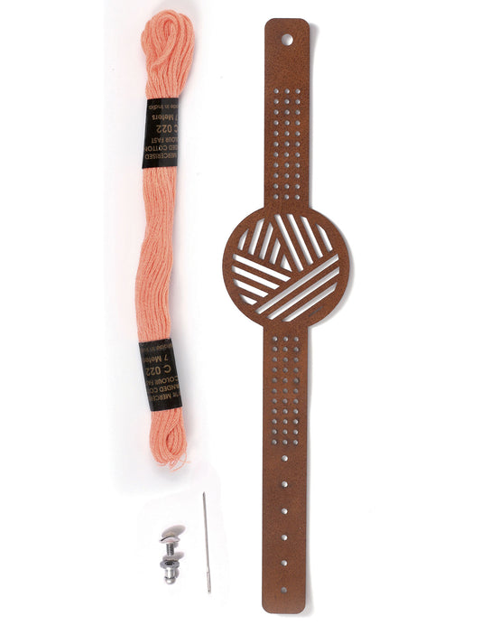 VyprodánoHnědý kožený vyšívací náramek s kulatým vzorem manžety pro dospělé