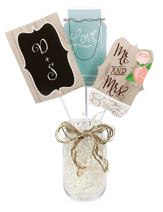 Vyprodáno3 ks středových dekorací na stůl pan a paní, tabule k personalizaci