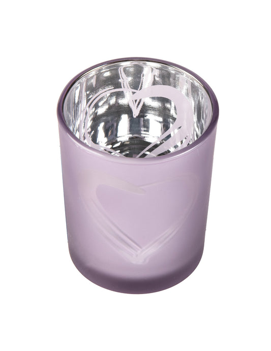 VyprodánoSkleněný svícen ve tvaru srdce parmové barvy 6,8 x 5,8 cm matná stříbrná