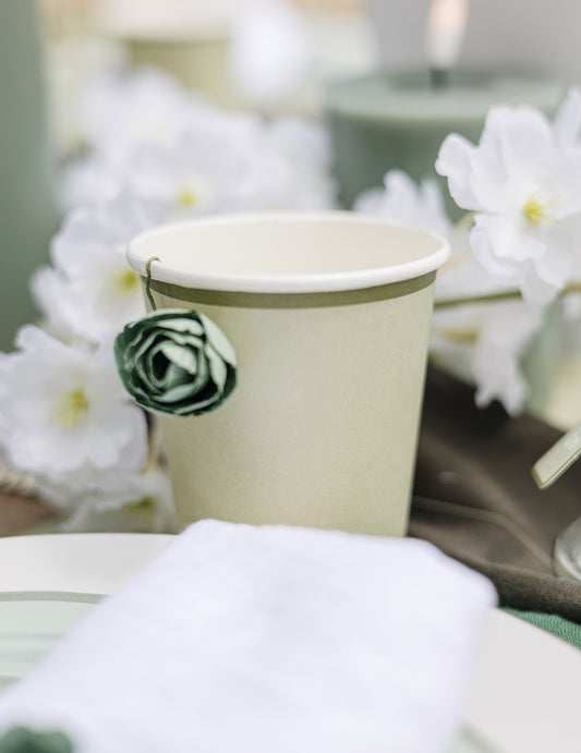 6 gobelets bi-color en carton vert de gris et vert sauge champêtre
