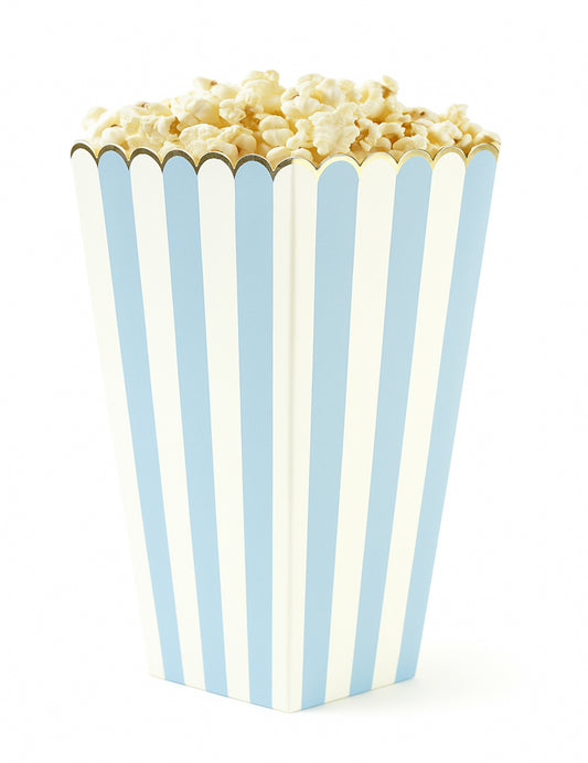 8 boîtes à pop corn bleu pastel et or en carton rayé