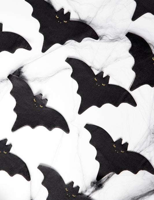 Vyprodáno20 černých a zlatých netopýřích papírových ubrousků 16 x 9 cm na halloween