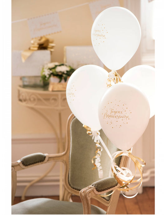 Vyprodáno8 latexových balónků z bílého a kovového zlata k narozeninám 23 cm balón