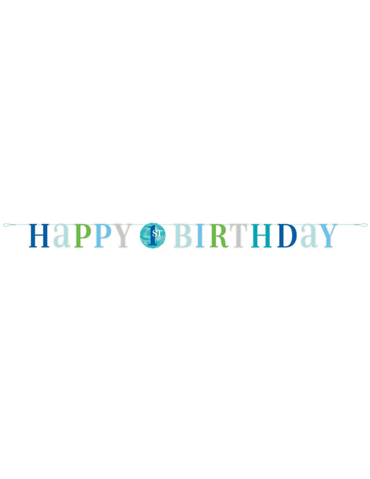 VyprodánoVšechno nejlepší k 1. narozeninám modrá lepenková girlanda 1,8 m chlapecká dekorace