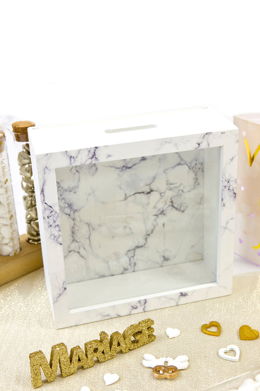 VyprodánoDřevěná schránka na vzkazy s bílým mramorovým efektem 18 x 7 cm na svatbu
