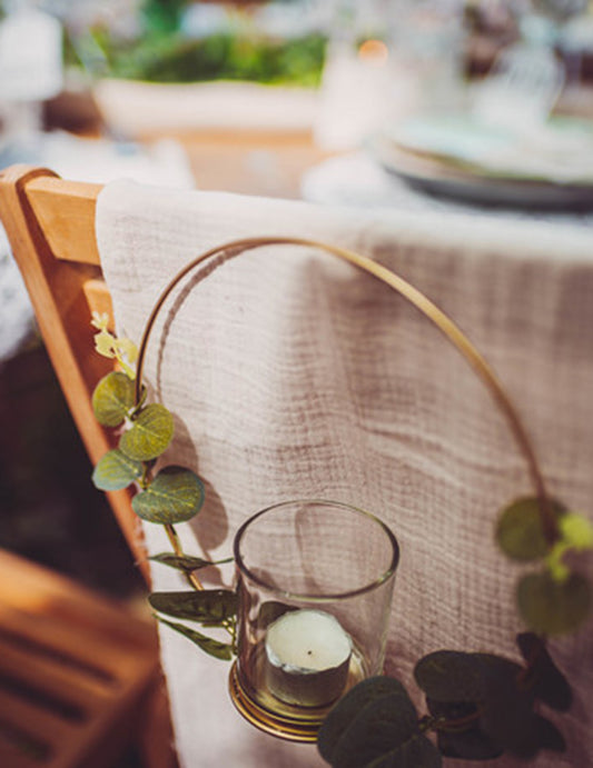VyprodánoEukalyptový kovový svícen na čajovou svíčku na zlatém kruhu 22 cm pověsit