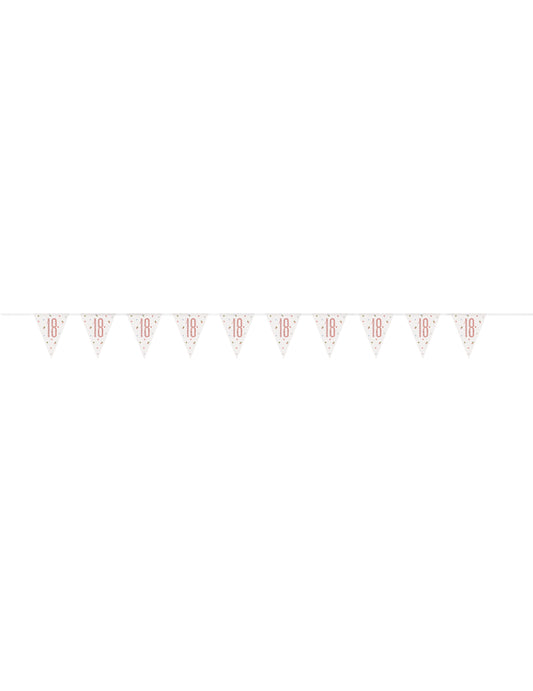 VyprodánoPlastová vlaječková girlanda 18 let bílá a růžová 2,74 m s puntíky