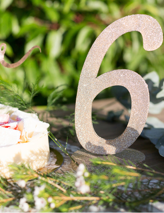 Středový prvek číslo 6, šampaňské, třpytivé dřevo, 20 cm
