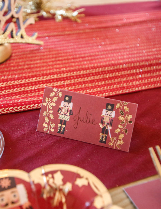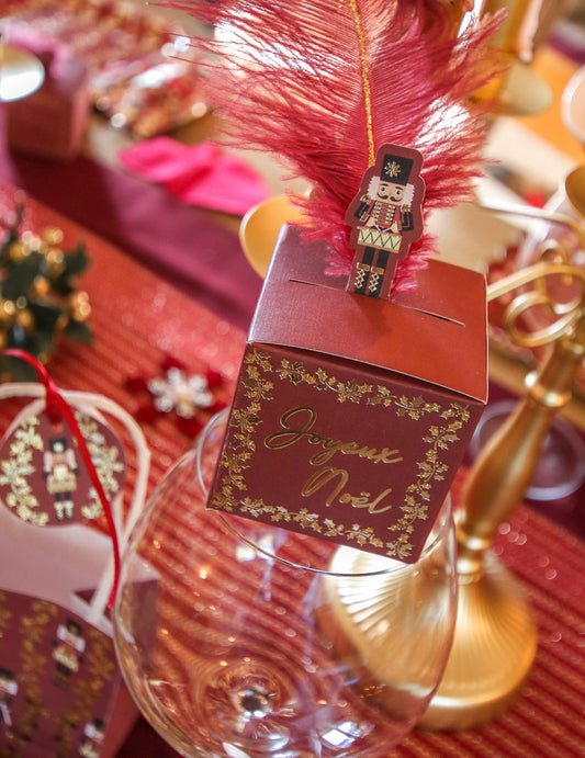 Vyprodáno8 slavnostních burgundských a zlatých louskáčkových karet 8 x 4 cm