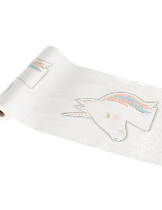 VyprodánoPastelový jednorožec bílý sametový běhoun na stůl 28 cm x 3 m party dekorace