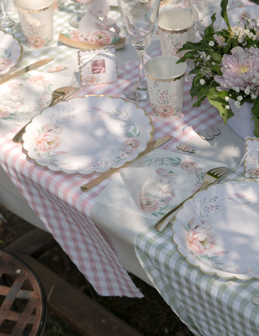 VyprodánoRůžový ginghamový běhoun na stůl 26 cm x 3 m motiv guety