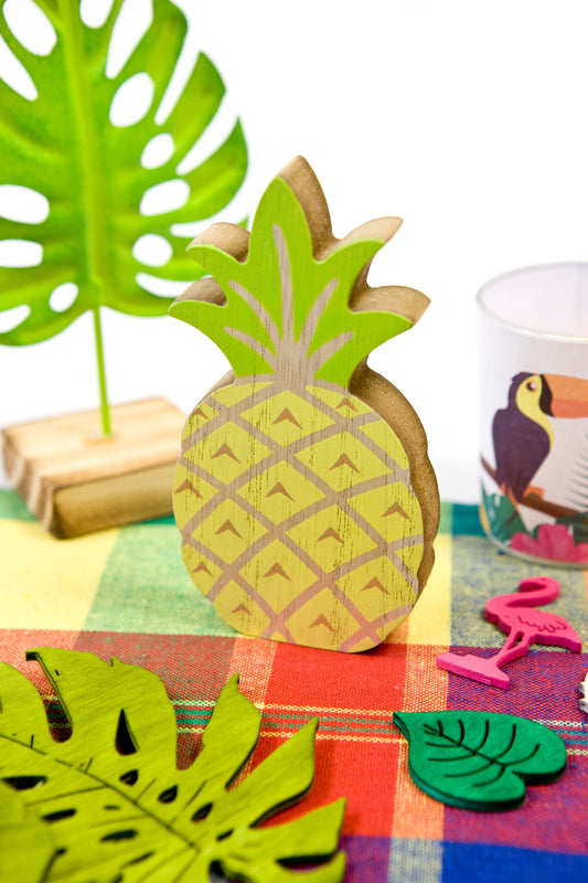 8 mini vícebarevných papírových dekorací na stůl s ananasem 12 cm