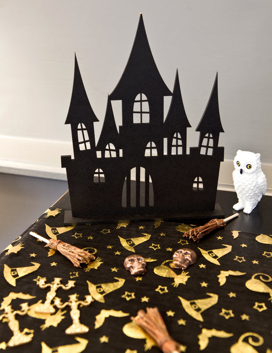 Papírová dekorace na stůl k 18. narozeninám v černé a zlaté barvě s voštinou, 23 x 30 cm