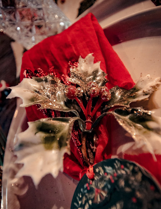 Akce4 větve cesmíny na zlatém třpytivém stonku 9 cm Vánoce