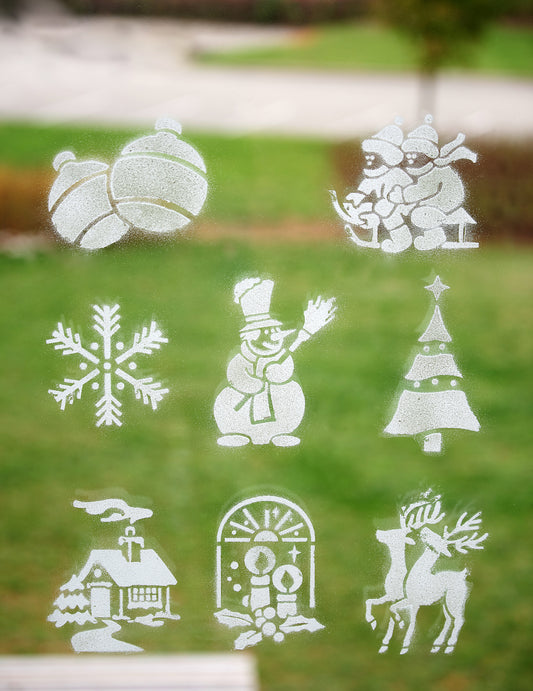 Zahrnuto: 1 sprej s umělým sněhem, 8 šablon