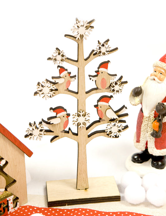 SlevaDřevěná dekorace na stromeček s ptáčky a sněhovými vločkami 18 x 11 x 4 cm
