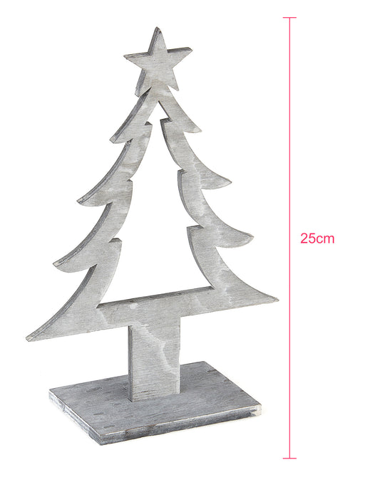 Šedá dřevěná vánoční dekorace na stromeček 25 x 11 x 8 cm